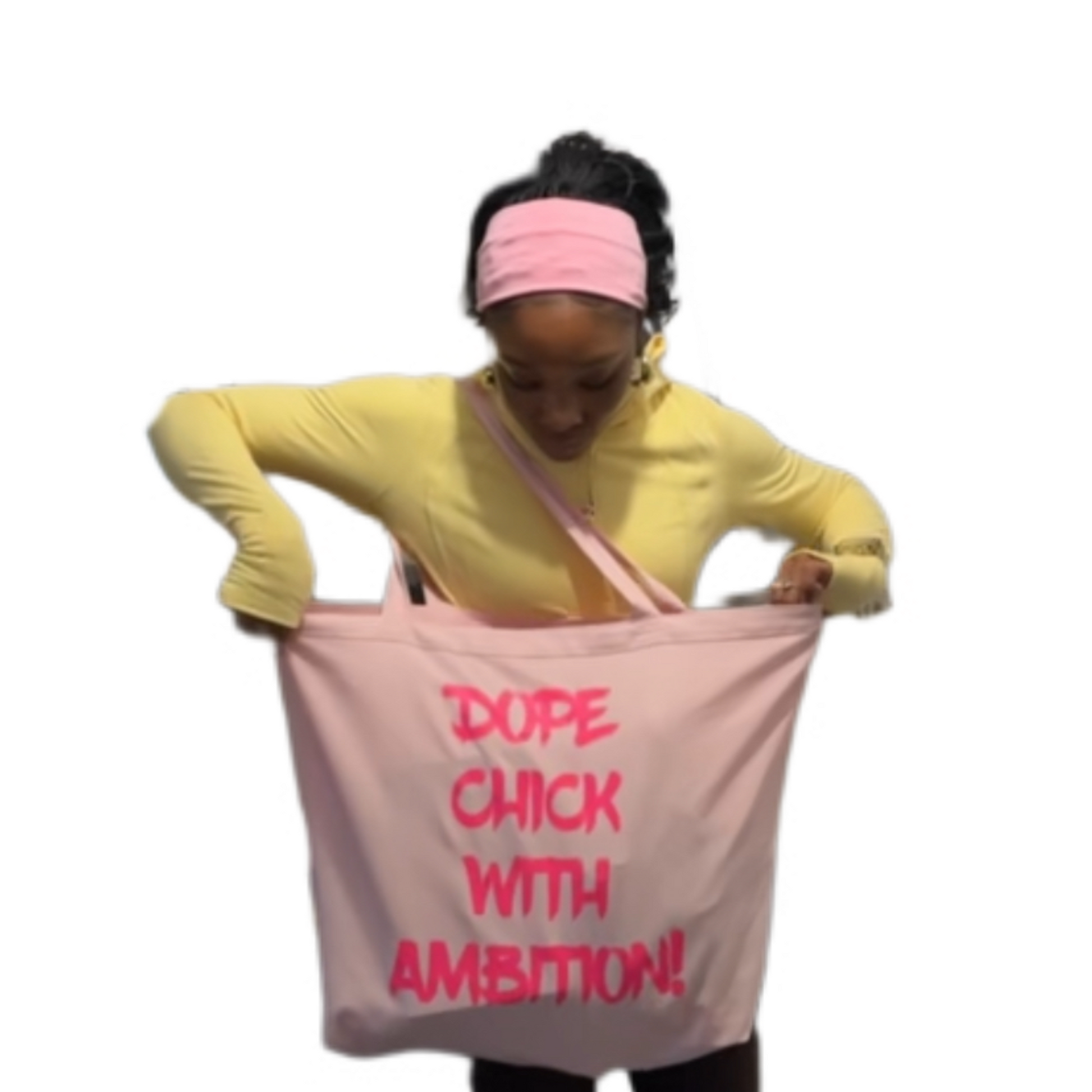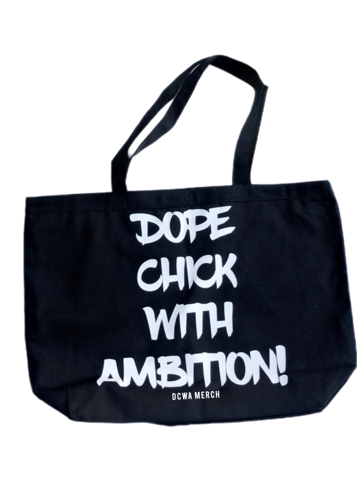 Carry your ambition everywhere you go with our Oversized Dope Chick With Ambition tote bag. Perfect for the podcast listener who wants to rep the DCWA brand in style or the Dope Chick that’s busy and the move achieving her goals!!